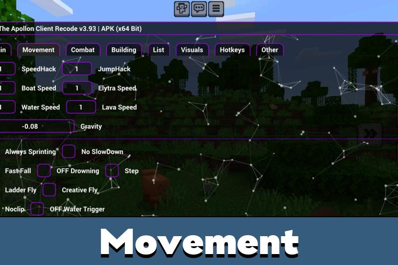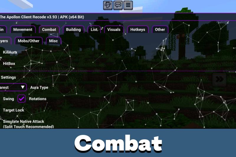 Download Apollon cheat and enhance Minecraft PE with combat and movement advantages.