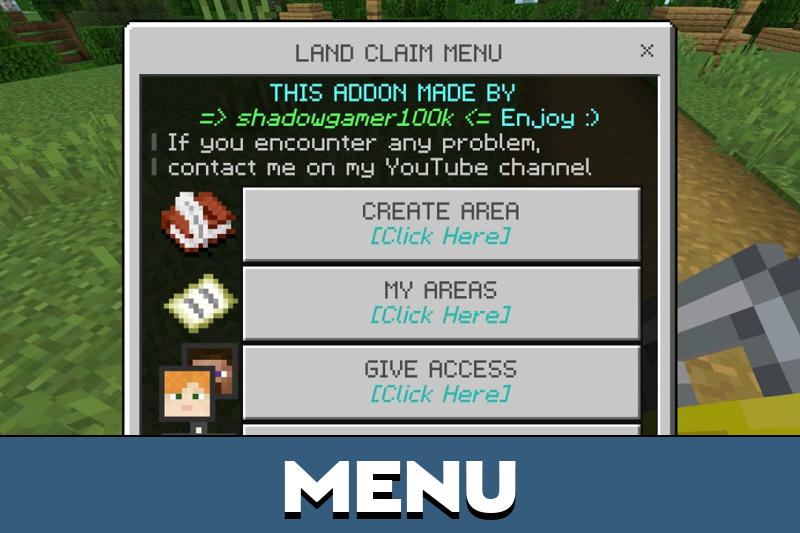 Download Land Claim Mod for Minecraft PE: claim your own area and block other players from modifying or damaging it.