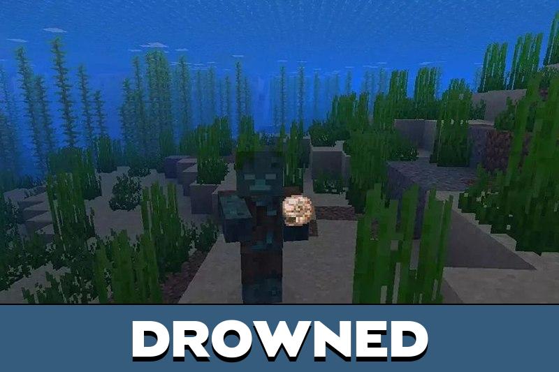 By the way, there is also another type of this mob in the game – the Zombie Nautilus. There is a hostile mob with a trident sitting on it, which can be very dangerous for players.