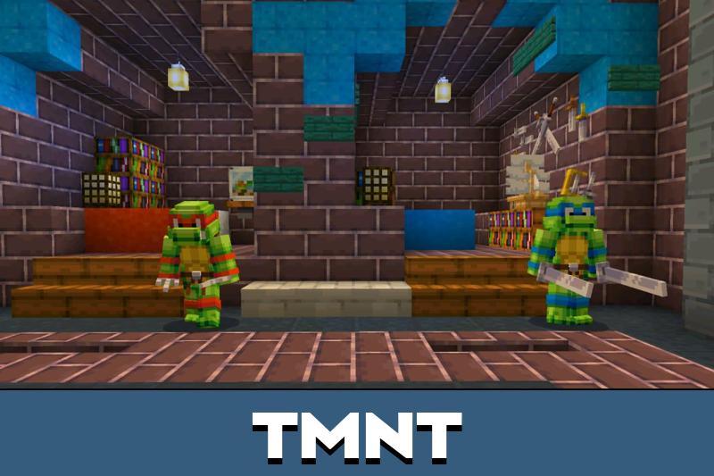 Download Ninja Turtles addon for Minecraft PE and team up with familiar heroes to battle enemies and protect the city.