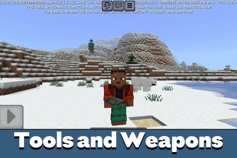First, it is worth noting that this mod adds versions of vanilla tools to the game. There are also new items that are usually not available in Minecraft PE. These are hammers, lucky swords, drills, and more.
