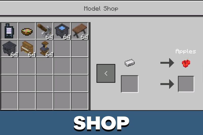 To support these mechanics, functional furniture is included. Beds, rest objects, and utility blocks are used to restore specific parameters and stabilize survival flow without altering vanilla progression.